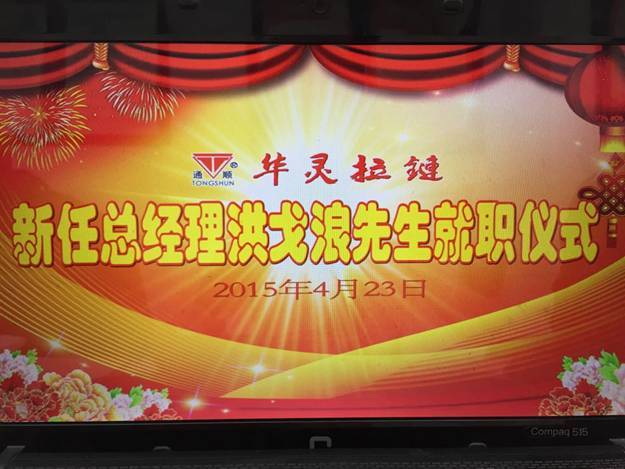 2015年4月23日星期四上午7:30分在会议室举行新任总经理洪戈浪先生的就职仪式。