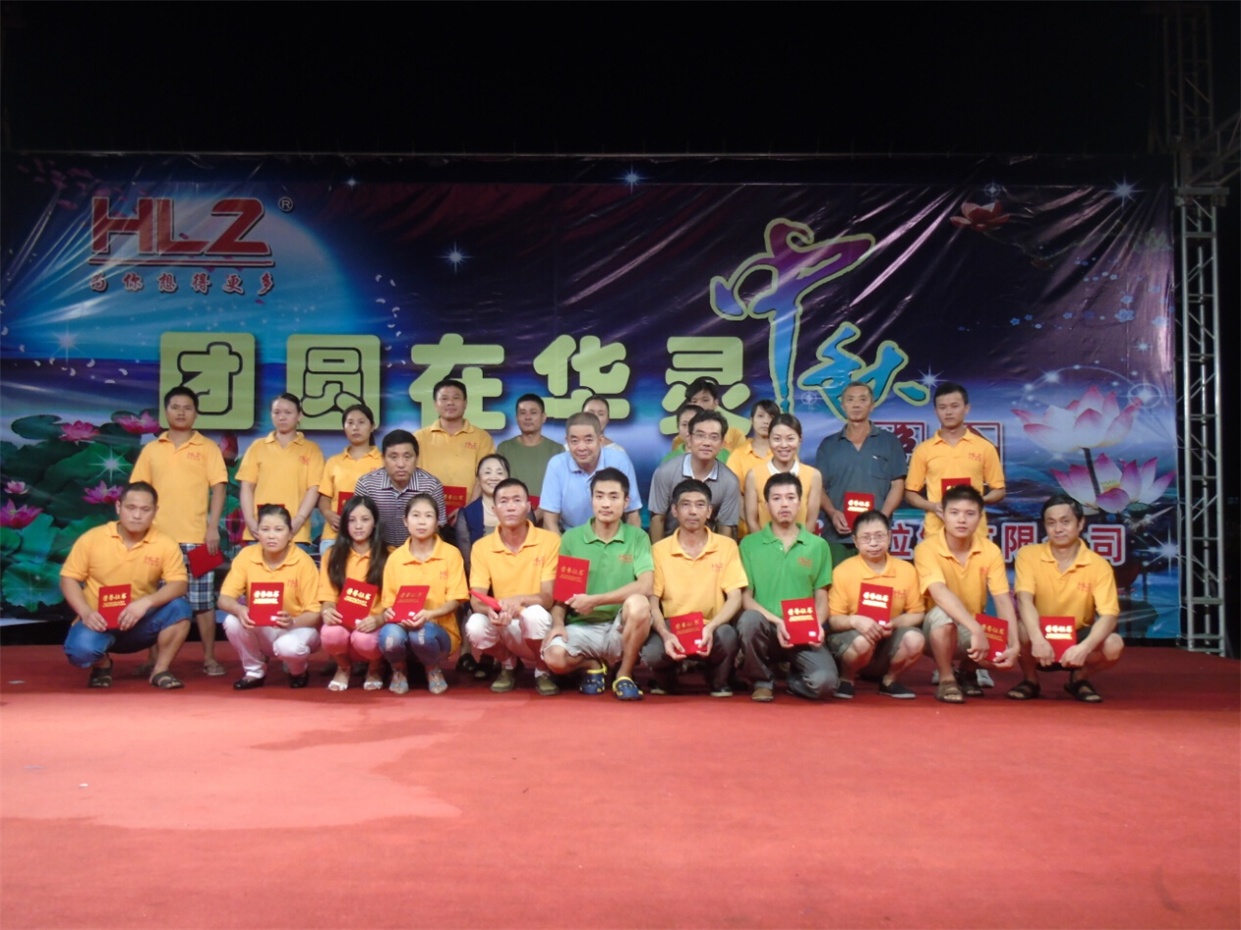 In the 2014 Mid Autumn evening party , all the staffs gathered together to dance and sing.